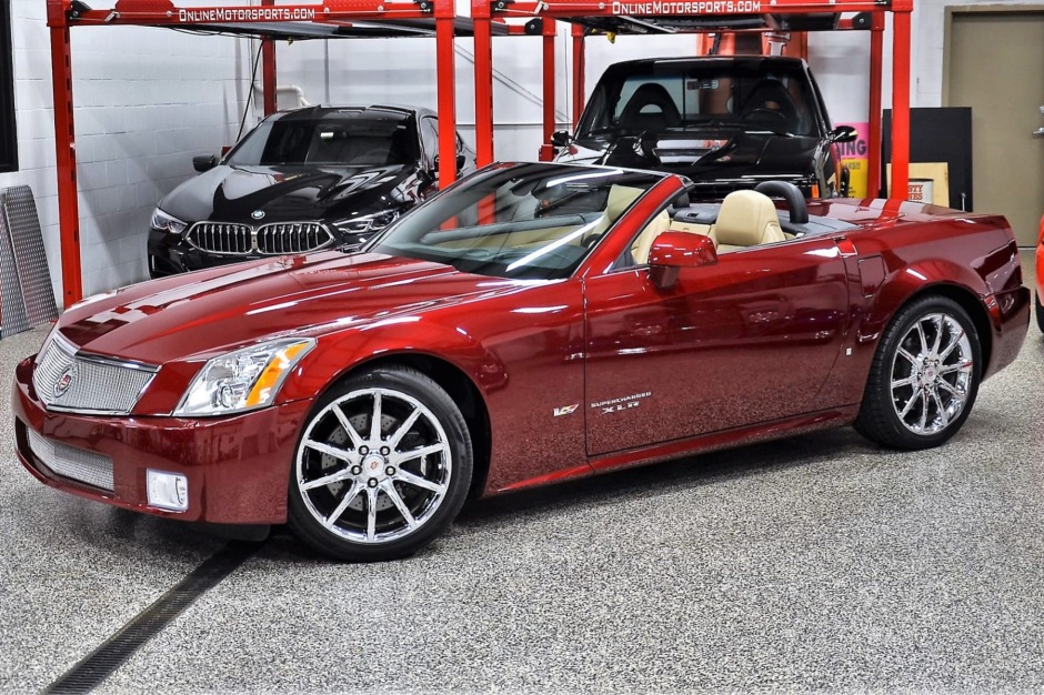 This 2007 Cadillac XLR-V is powered by a supercharged 4.4-liter V8 mated with a six-speed automatic transaxle, and it is finished in Infrared over Cashmere leather and microsuede upholstery. Equipment includes a power-retractable hardtop, Magnetic Ride Control suspension, chrome-finished 19″ aluminum wheels, adaptive HID headlights, Hotchkis Sport Suspension sway bars, and heated, ventilated, and power-adjustable seats. The car was first delivered to Butts Pontiac-Cadillac-Jeep-Eagle of Seaside, California, it was recently acquired by the seller and now has just over 8,400 miles.