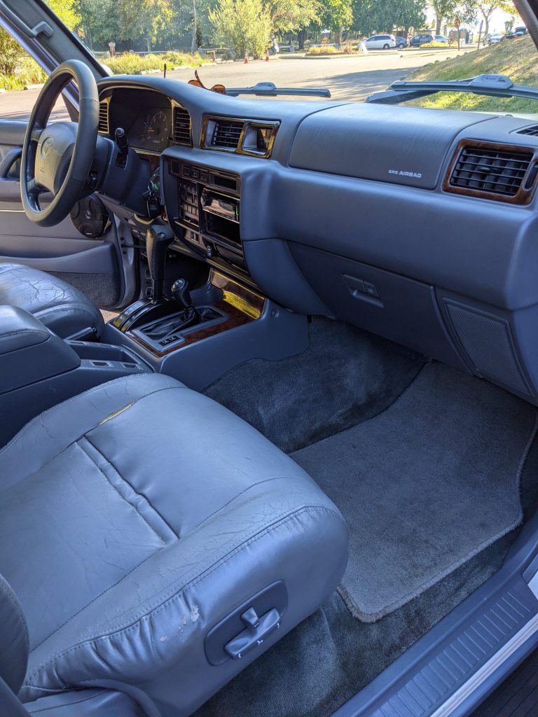 The 4.5-liter 1FZ-FE inline-six was rated at 212 horsepower and 275 lb-ft of torque when new. Maintenance carried out under current ownership is said to have included replacement of the spark plugs, radiator, coolant hoses, water pump, head gasket, rear main seal, exhaust manifold gasket, exhaust y-pipe, and battery.
