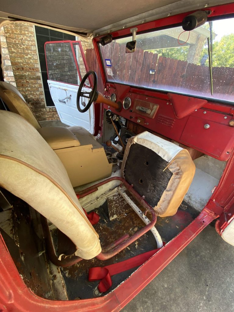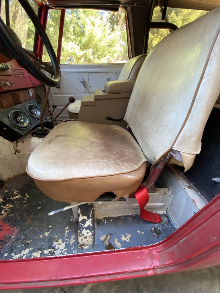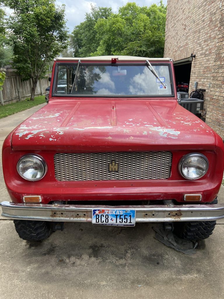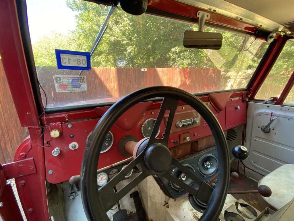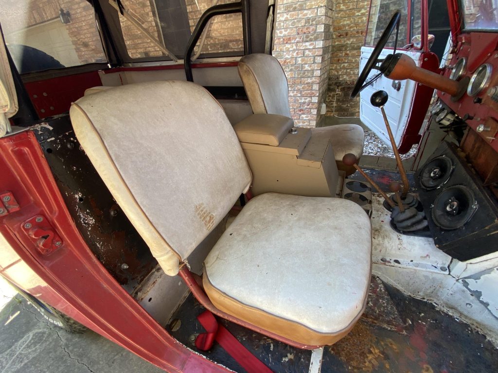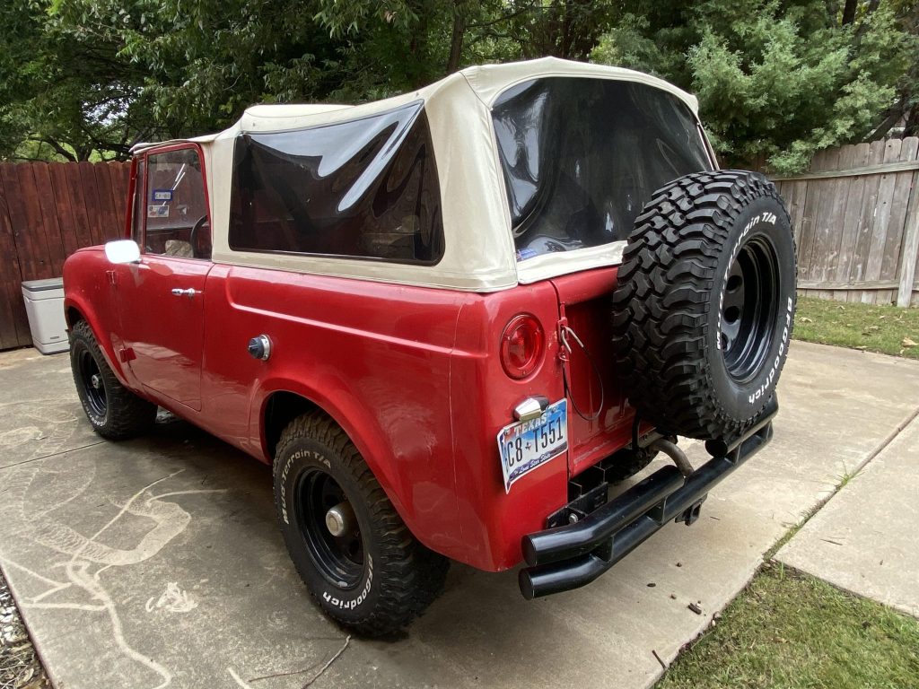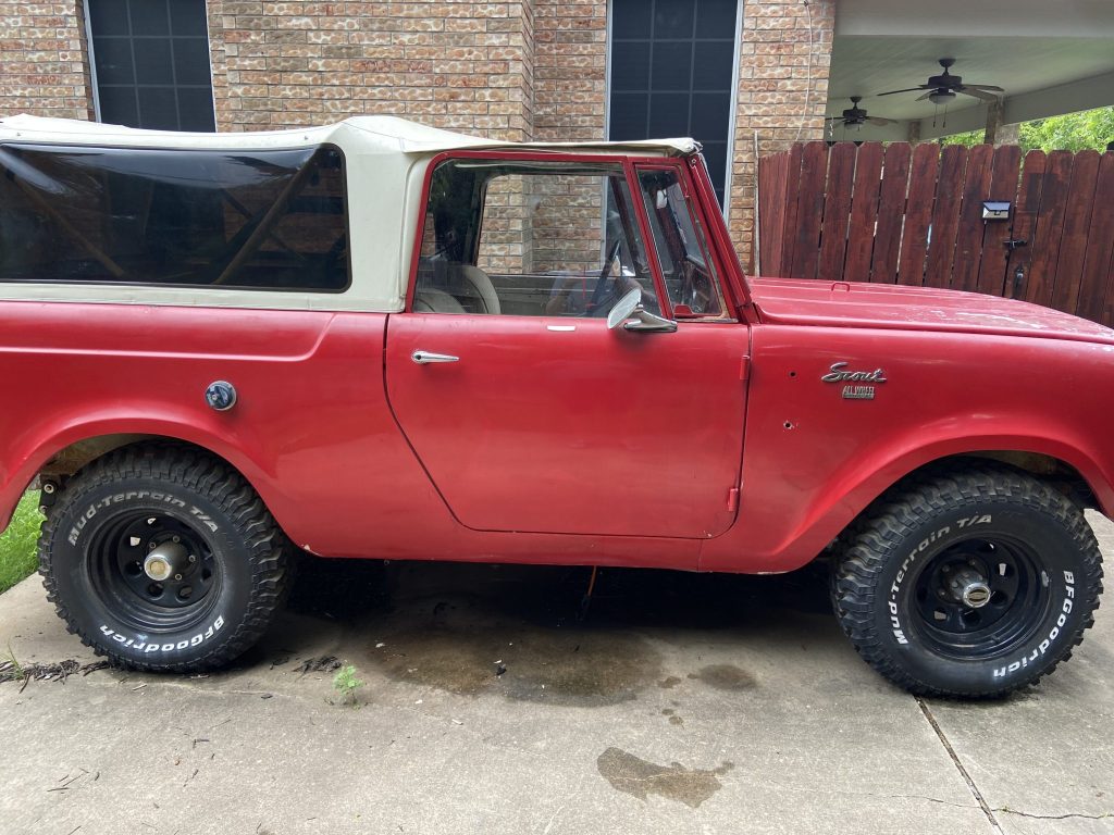 This 1965 International Harvester Scout 80 is finished in red over beige upholstery, and the 152ci inline-four, three-speed manual transmission, and dual-range transfer case are said to have been overhauled under current ownership. Features include a white soft top, 15″ wheels with 31″ tires, a Painless Wiring harness, and a locking center console with a Clarion stereo. The truck has been stored for the better part of a decade, and the fuel system, suspension, brakes, and other areas will require attention before it can be driven.