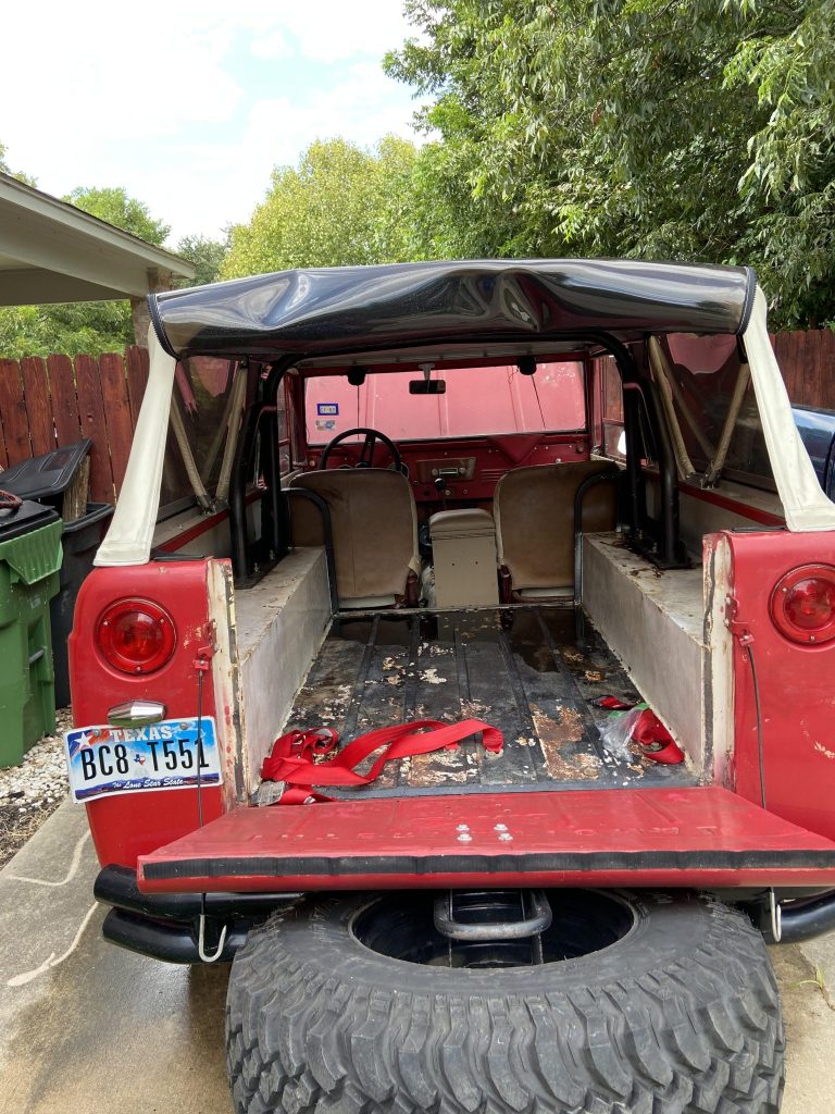 Black 15″ Cragar Soft 8 wheels are mounted with 31×10.50″ BFGoodrich Mud-Terrain T/A KM tires, and a matching spare is located at the rear. The steering box has reportedly been rebuilt, stainless-steel brake lines have been installed, and the shocks have been replaced.