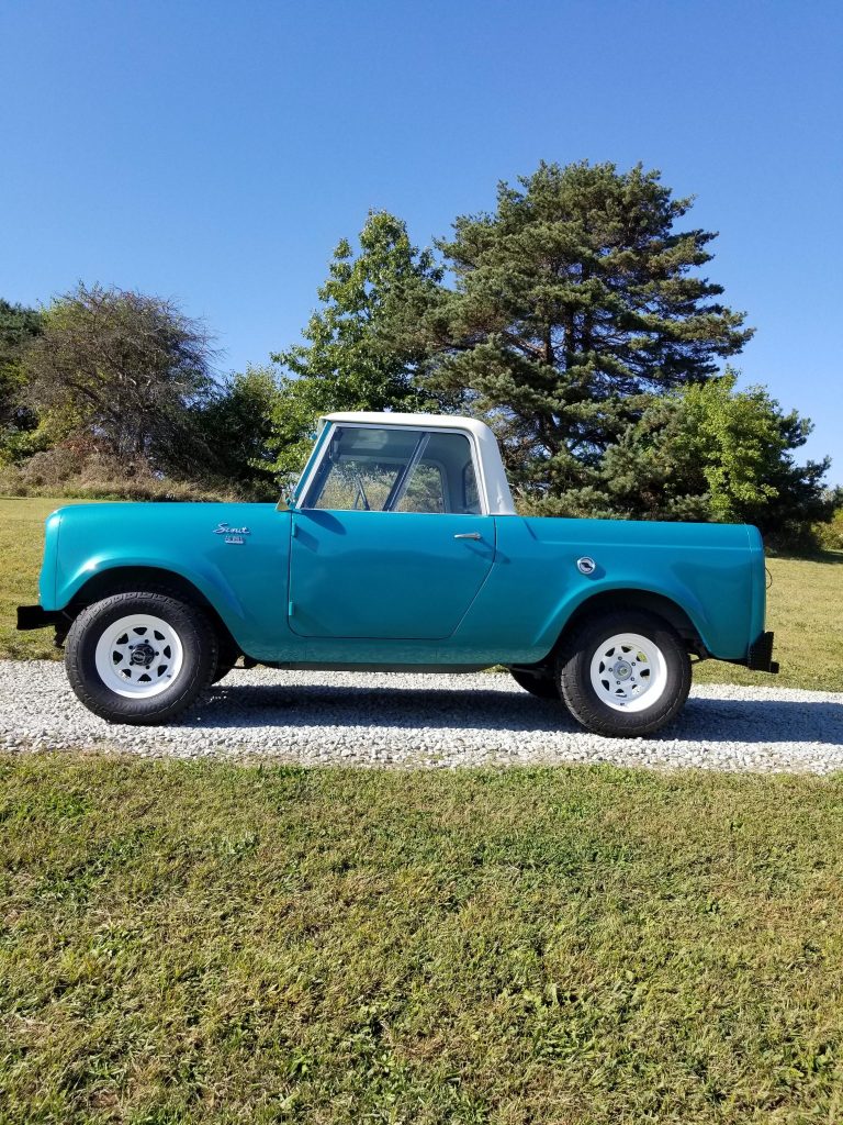 …This 1961 International Harvester Scout 80 is finished in blue with a removable white hardtop over a black interior and is powered by a 152ci inline-four mated to a three-speed manual transmission and a twin-stick dual-range transfer case. It was originally delivered to Spokane, Washington and underwent a cosmetic and mechanical refurbishment prior to the seller’s acquisition earlier this year. Equipment includes a Warn overdrive unit, PerTronix ignition, white-finished 15” wagon wheels, and aftermarket gauges.