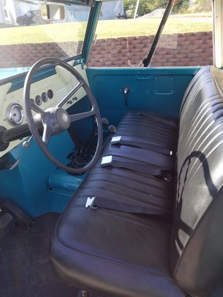 The interior features a bench seat trimmed in black vinyl along with matching floors and a white dashboard.