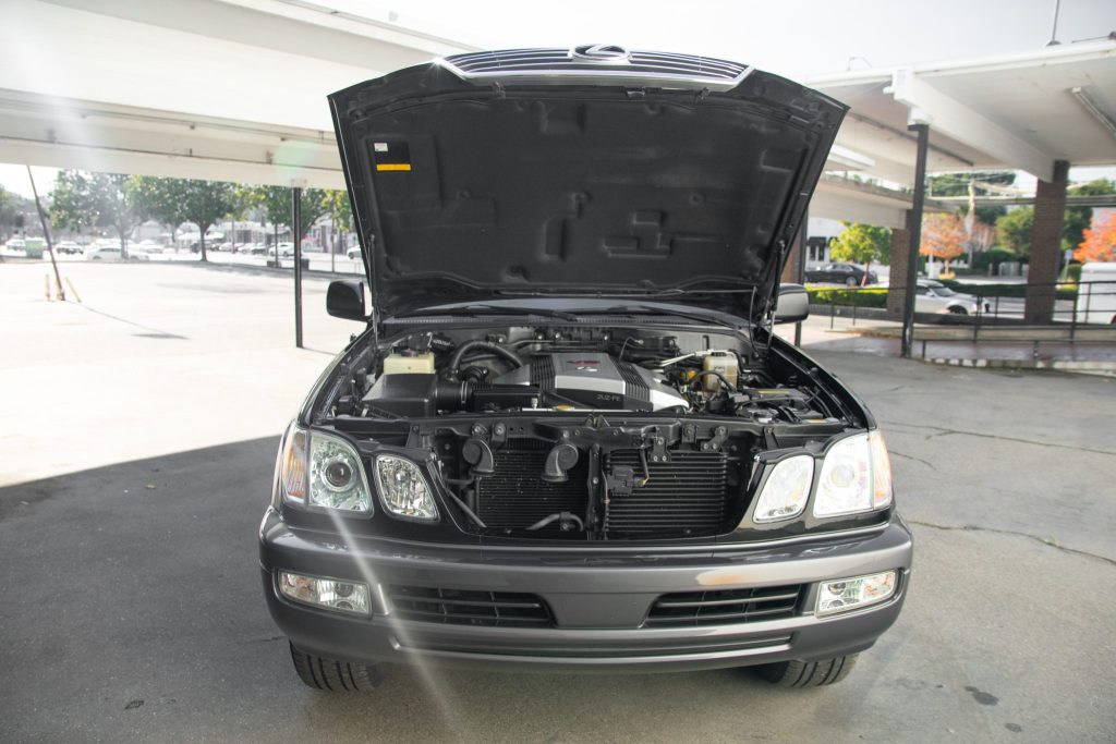 This 2007 Lexus LX470 is one of 400 Limited Edition examples produced for the model year, and it is finished in Black Onyx over Stone leather. Power comes from a 4.7-liter V8 paired with a five-speed automatic transmission, a dual-range transfer case, and a locking center differential. Additional equipment includes 18″ alloy wheels, Adaptive Variable Suspension with Adjustable Height Control, a sunroof, heated front seats, a DVD player with rear passenger screens, factory navigation, a Mark Levinson sound system, and third-row seating.