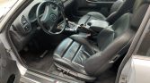 The car is finished in Arctic Silver Metallic and features a rear spoiler along with aerodynamic bumper covers and side skirts. Additional exterior equipment includes a power sunroof, fog lights, and twin exhaust outlets. The seller reports that the bumper was repainted to repair scratches.