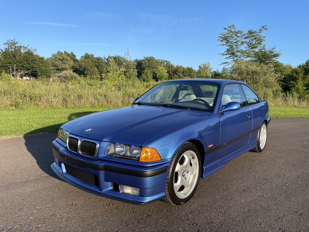 The previous owner has refinished this 1999 BMW M3 coupe in Estoril Blue Metallic, retrimmed the headliner in Alcantara, refreshed the cooling system, and replaced the valve cover gaskets, ignition components, and the tires. The car is powered by a 3.2-liter inline-six paired with a five-speed manual transmission. The interior is trimmed in Light Gray Nappa leather, and additional features include a limited-slip differential, a sunroof, 17″ Style 23 wheels, heated power-adjustable Vader sport seats, a remote six-disc…