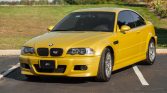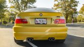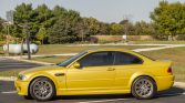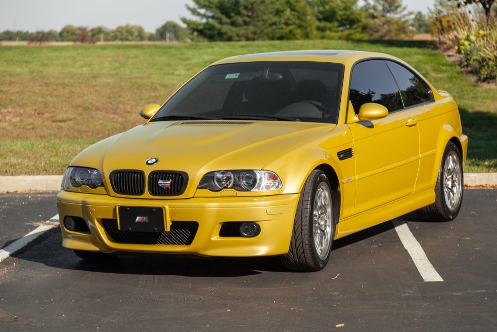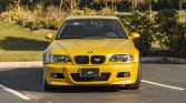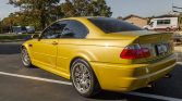This 2001 BMW M3 coupe is finished in Phoenix Yellow Metallic over black Nappa leather and is powered by a 3.2-liter inline-six mated to a six-speed manual transmission and a limited-slip differential. Equipment includes 18″ Style 67 wheels, xenon headlights with aftermarket halos, a power sunroof, heated front seats, automatic climate control, and a Harman Kardon audio system.