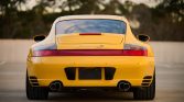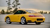 This 2003 Porsche 911 Carrera 4S coupe is powered by a 3.6-liter flat-six that powers all four wheels via a six-speed manual gearbox, and it is finished in Speed Yellow over black full leather with yellow stitching. Equipment includes a speed-activated rear spoiler, 18″ Turbo-look wheels, Park Assist, Porsche Communication Management with navigation, yellow seatbelts, a sunroof, automatic climate control, cruise control, power windows, and central locking. Service in preparation for the sale included an IMS-bearing retrofit…