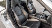 The cabin features heated sport seats trimmed in black leather with embossed headrests as well as a matching dashboard, door panels, and carpets. Equipment includes the Sport Chrono Package Plus, automatic climate control, illuminated stainless-steel door entry guards, Porsche Communication Management with navigation, and a Bose sound system. The cupholder mechanism was reportedly replaced in March 2021.